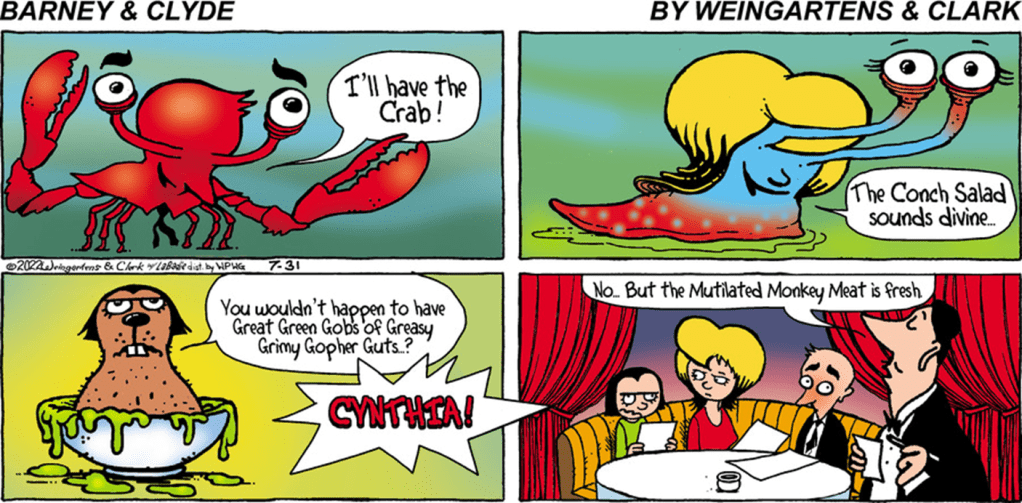 The first panel seems ready to get a little more topical / political than Wrong Hands usually means to get into. But then IDU the second panel. Are the free raisins just something inconsequential, that you would probably drive right past? Or is the situation there rather suspicious? No grape vines, so we’re not talking natural sun-dried raisins. Will they just be rabbit pellets?
