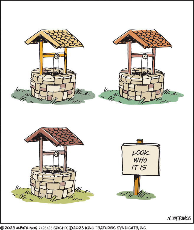 Finally, Maggie the Cartoonist submitted “The Old Cartoonists’ Home” (rerun on 31-May-2023) for the Sunday Funnies, because (as she put it) “… eventually you, me, and Gary Larson will all end up in The Old Cartoonists’ Home.“