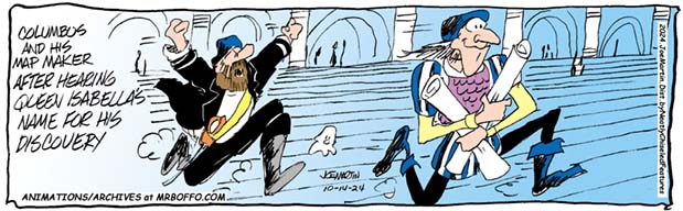 P.S. The strip’s publication date does not count as a mistake. Columbus Day originally fell on October 12th, but that was according to the Julian calendar. It was moved to the second Monday in October for convenience, but would actually have fell on October 21st, if the modern (Gregorian) calendar had been in use back then.