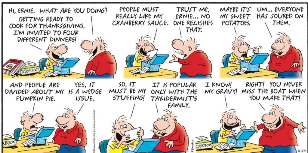 This cartoon by John Jonik was first published in the New Yorker exactly 41 years ago today, but I discovered it too late to add it to the Thanksgiving collection for 2023.