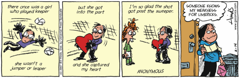 … According to The Daily Cartoonist, Hinds “decided to bring his comic strip to a close, citing the need to focus on other projects that are more economically profitable.” Wikipedia reports that the strip was in 75 newspapers, which apparently was not enough to make a viable living on, but Hinds did have Tank McNamara as a fallback, which at one point was appearing in 350 newspapers. Cleats is still in reruns at GoComics, and may (or may not) still be appearing in print somewhere, but this is the first time that it has appeared at CIDU in more than 15 years (that was over a decade before Comicgeddon).