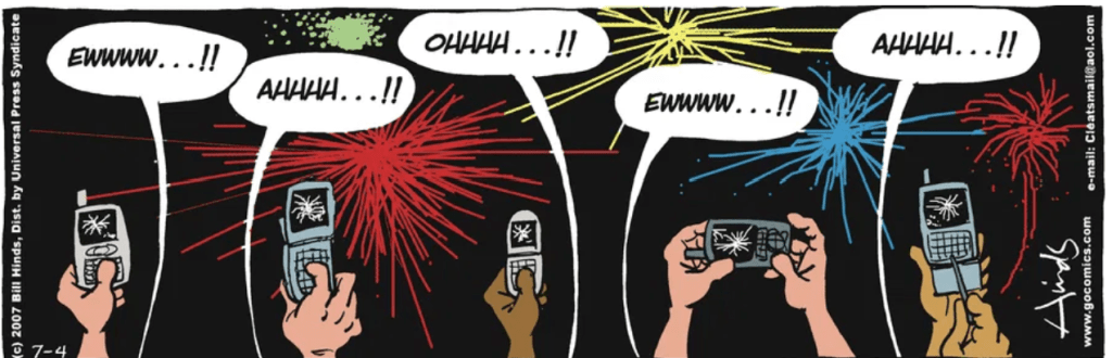 Aaron Johnson’s niche comic “What the Duck” ran for ten years (from 2006 to 2016), and was picked up for syndication in 2008 (using the euphemistic title “W.T. Duck“). The GoComics archive began in 2009, but recently ended (without any explanation) exactly fifteen years later (in January 2024). Note that the dates of the strips in the GC archive have absolutely no relationship to the original publishing run. This was the author’s final strip, which seems to apply to cartooning just as much as to photography: