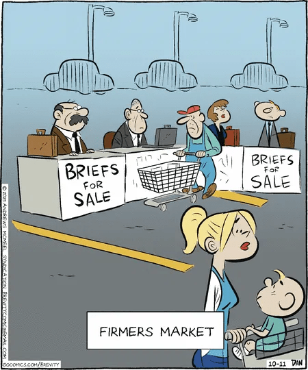 Mitch4 sends this in, with a brief comment: “The signs about briefs probably mean legal briefs rather than underwear briefs, since the tables seat these professionals with briefcases. But either way, what does it have to do with “firmers”, whatever those are? I mean, you don’t need to write a brief to establish a business firm.”