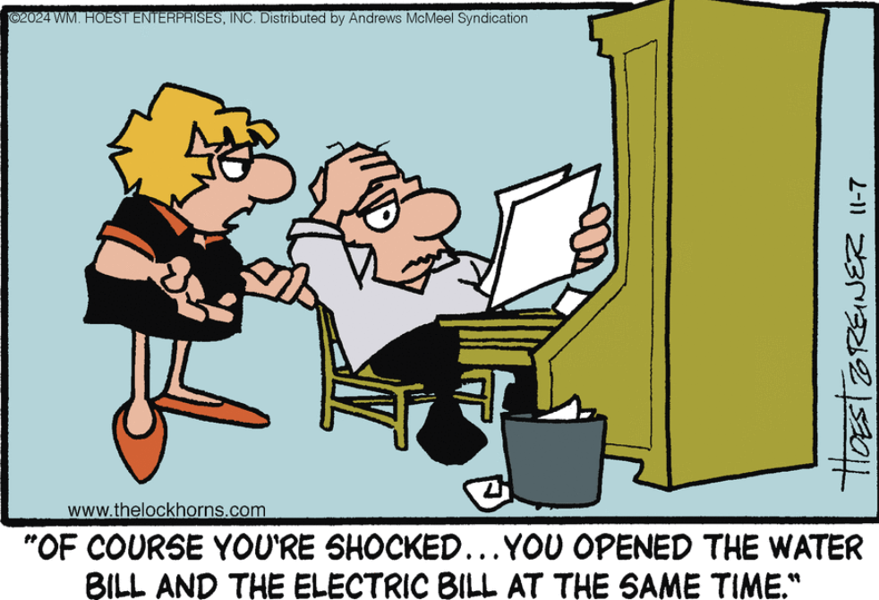 P.S. This submission accidentally fell through the cracks. At the time, Boise Ed reported that “Comics Kingdom has apparently been on holiday since at least last night, so I’ve given the ArcaMax URL“. As I’ve explained elsewhere, Arcamax-URLs have a very limited half-life. In addition, since this comic was published, Comics Kingdom has been completely rebuilt, and The Lockhorns have changed syndicates, so that the strip is now at GoComics. Luckily, Ed’s brief, but accurate description made it easy to verify the correct comic.