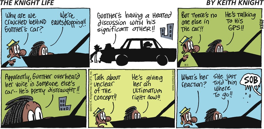 I’d also add that there seems to be a video camera in the background, AND the woman in pink is driving something that looks more like a courtroom typewriter than a laptop–is this a recycled strip? Yet neither Tineye nor Google Images finds it, so maybe not. Perhaps Hoest and Reiner are stuck in the past?