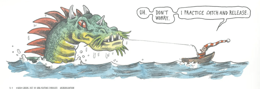 … Mark comments: “This is one of the only comics I have seen where the four-fingered cartoon hands were used as part of the joke. But what if he had needed a nine-iron?“