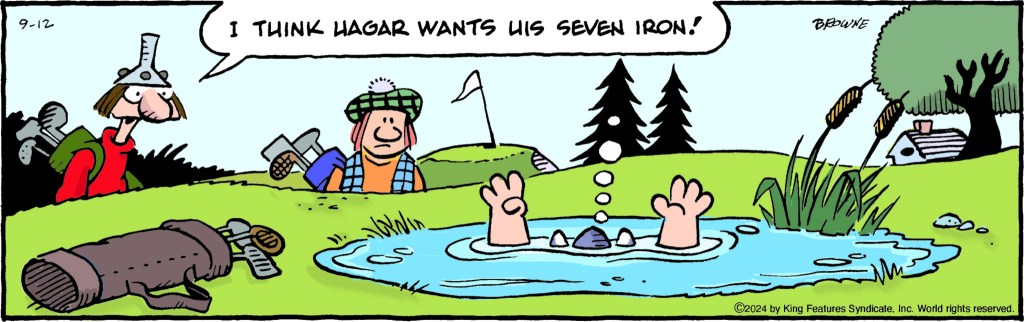 Carl Fink submitted this Hägar the Horrible strip, commenting: “I think this is way too obvious to actually be an Arlo. Is there a category for ‘The Funnies just showed a young couple having sex in front of their neighbors, only slightly off panel’?“