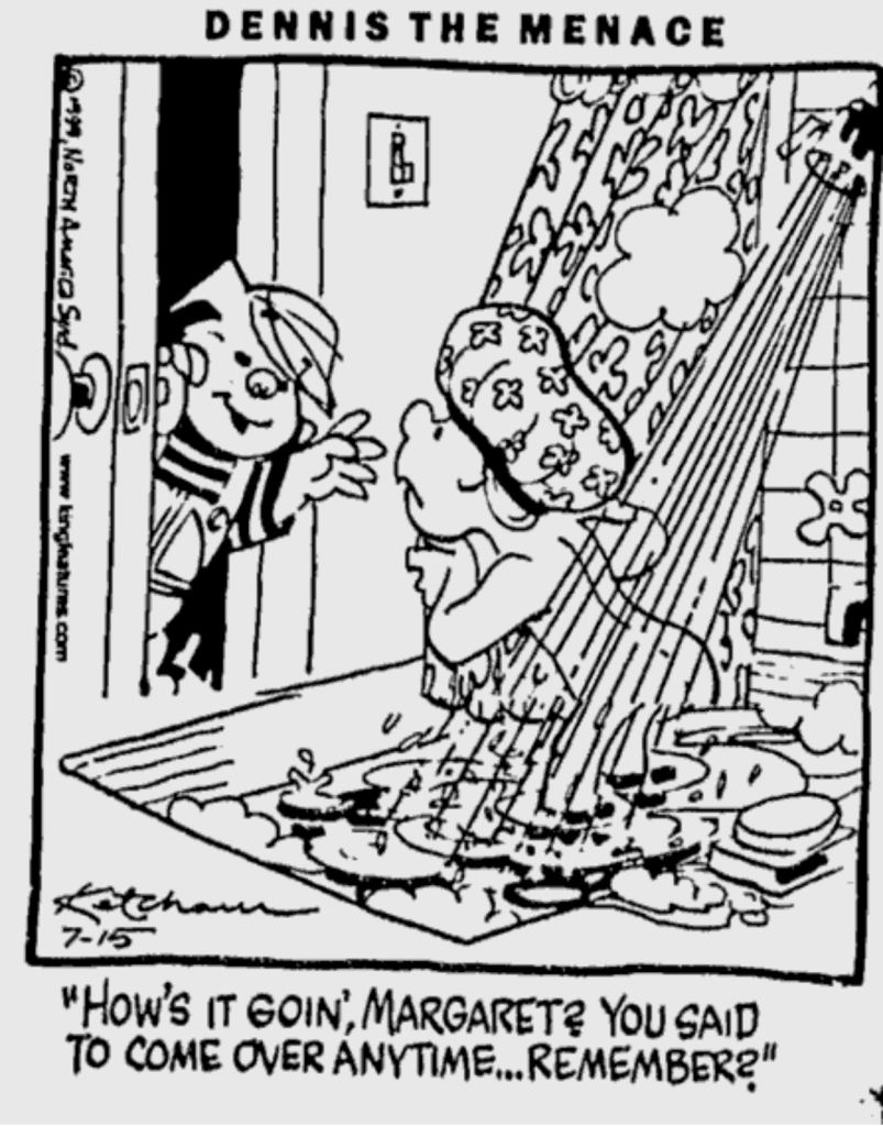 There is, of course, the running gag in Blondie in which Dagwood is interrupted in the bath. But that was used so often in lost any prurient effect and just the comic effect remained. And Dagwood somehow was always able to get a towel around critical parts.