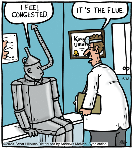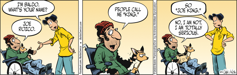 Oh but then! — but then I took a closer look, and I think the drawing is misleading, and actually the last panel includes both Adam’s speech balloon “Seriously .. all that?” as well as Katy’s and Clayton’s jibes. So the one with the cute shark tray pun is “second last” … or do you say “next to last”? Or “second back from the end”? Or “first before the last one”? Let’s go with PENULTIMATE!