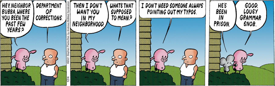 Maybe some answers are contained in the dialog written under the entrance archway in panel 4, which I really can’t make out.