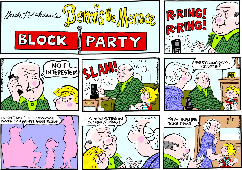 Sent by Stan as a CIDU. While he didn’t specify what aspect seems opaque, the “Block Party” title can yield to your pun-sense, but it may remain dubious why Mr. Wilson’s analogy to microbial resistance would count as an inside joke.