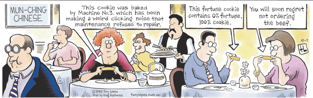 This one tripped me up, because I assumed a Pumpkin Spice Latte only had the spices used in pumpkin pie. This used to be true: introduced in 2003, Starbucks’ Pumpkin Spice Latte contained only the spices, and no pumpkin. That made sense. Who thinks steak sauce has steak in it? or shrimp sauce has shrimp in it? Or awlspice has an awl in it? But, in response to complaints, in 2015 they reformulated to add some pumpkin puree. That was really unnecessary, because a bit of pumpkin puree adds little taste. But this does mean Blazek’s joke actually works.