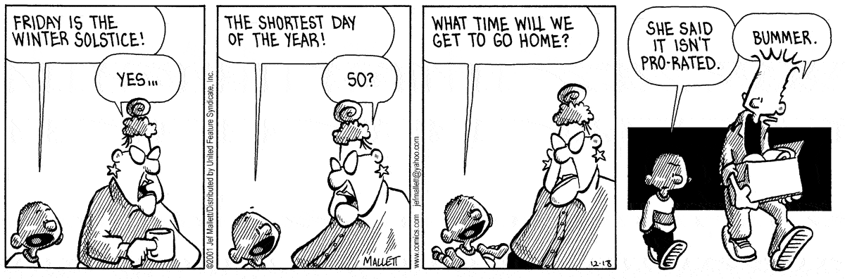P.S. Jef Mallett lives in Michigan, and must be very familiar with how short the days get in northern latitudes. On the other hand, Berlin is located ten degrees farther north than Detroit, so Mallett doesn’t have that much to complain about.