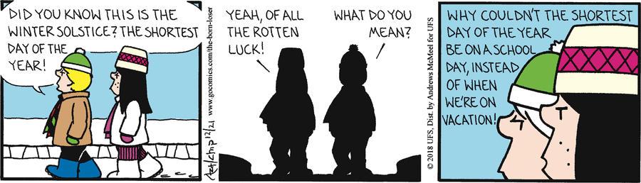 … As opposed to both of the “Born Loser” strips, Frazz is referring here to net sunlight, rather than total duration.