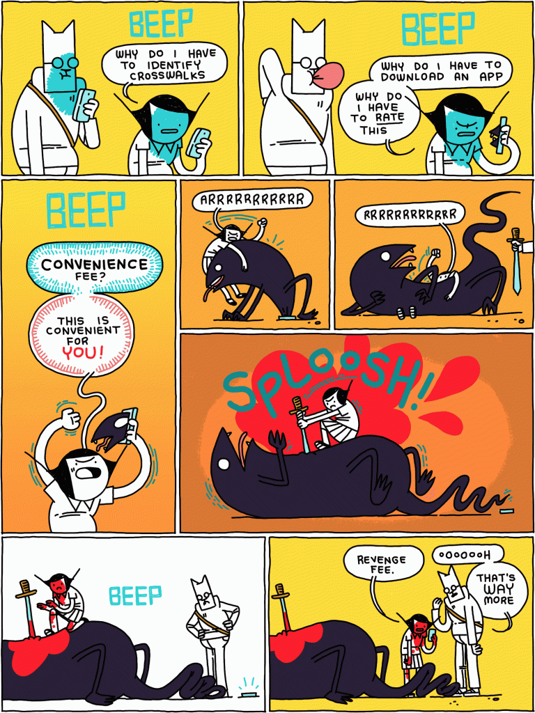 Typically when we’ve dealt with a long-form Cat and Girl, the cartoon has seemed to need some explaining, and we shoehorn it into a CIDU option of some kind. So what a pleasure it is to see them straightforwardly taking on some “complaint observational humor” (well, with exaggeration, but that’s to be expected).