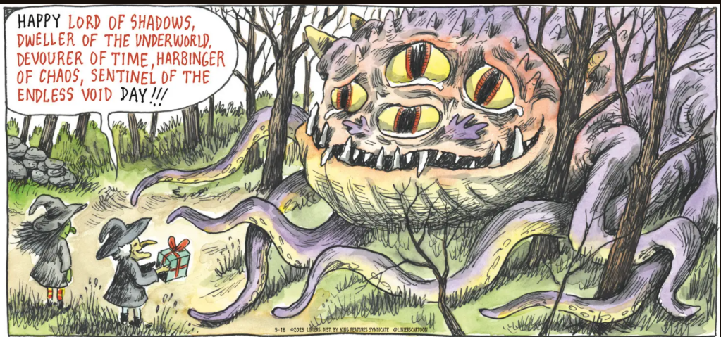 Macanudo has been extremely dependable since I started following it several years ago: whimsical, sometimes poignant, but often surreal (and occasionally CIDU). Like Rubes, this makes it all the more noticeable when a strip just doesn’t work, like this one: