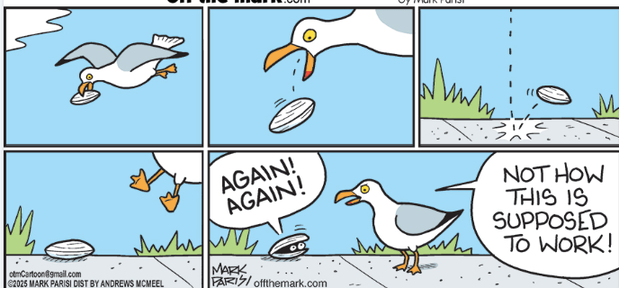 This one tripped me up, because I assumed a Pumpkin Spice Latte only had the spices used in pumpkin pie. This used to be true: introduced in 2003, Starbucks’ Pumpkin Spice Latte contained only the spices, and no pumpkin. That made sense. Who thinks steak sauce has steak in it? or shrimp sauce has shrimp in it? Or awlspice has an awl in it? But, in response to complaints, in 2015 they reformulated to add some pumpkin puree. That was really unnecessary, because a bit of pumpkin puree adds little taste. But this does mean Blazek’s joke actually works.