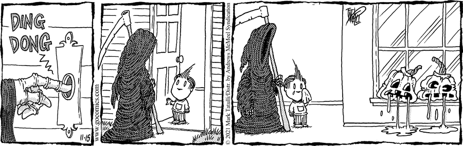 Color might have made this “Liō” strip easier to understand (each stack should be a different pastel shade), but Tatulli may have been going for the “dawning realization” effect.