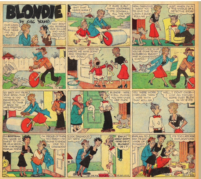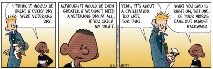 These two we noticed on sequential days in Maria’s Day. Since that strip is on a reruns cycle at GoComics, the actual dates of the recent appearance were 31 August and 01 September, but apparently the original publication was on 10 and 11 November of some year.