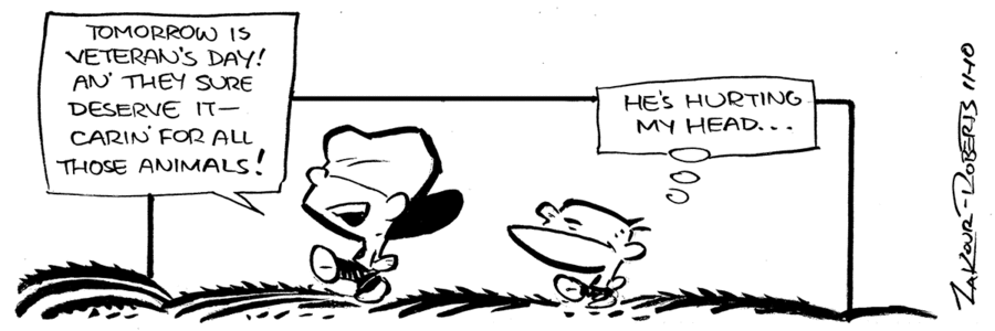 These are the same joke showing up as vintage Comics Kingdom on the same day, but the original Barney Google and Snuffy Smith is from November 15, 1938, and the original Beetle Bailey is from October 9, 1956, leading Dirk to note “Given the coincidence, it makes me wonder just how often this joke has been used in the last 100 years.”