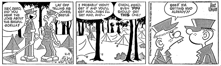 This strip seems to be dated 1964, and early enough in that year that “Viet Nam” did not yet mean all of what it would soon take on. Still, isn’t it a bit shocking that this might strike some of its audience as simply funny?