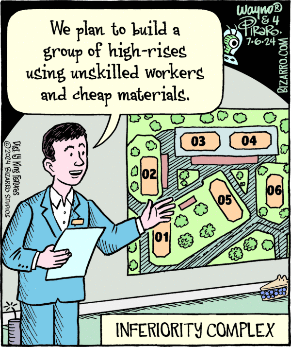 And his Bizarro partner Wayno on his weekly blog posts sometimes chooses a panel and shows the changes he made to turn it into the strip version. In this case, the strip had to become a column.
