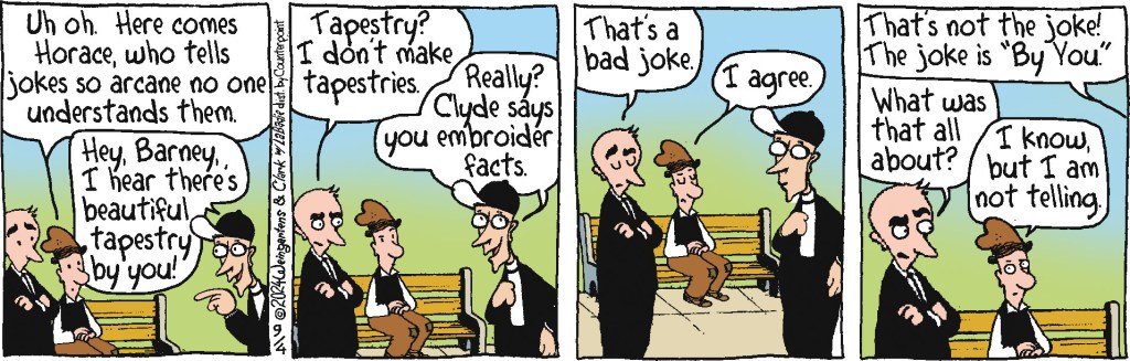 Since this strip seems to offer a pun every day, it is hard not to over-indulge. But this one was immediately right in the OY spirit!