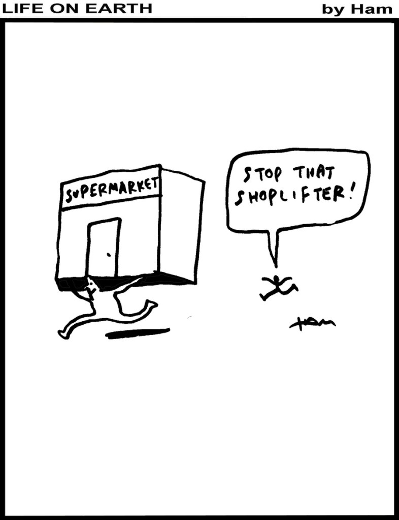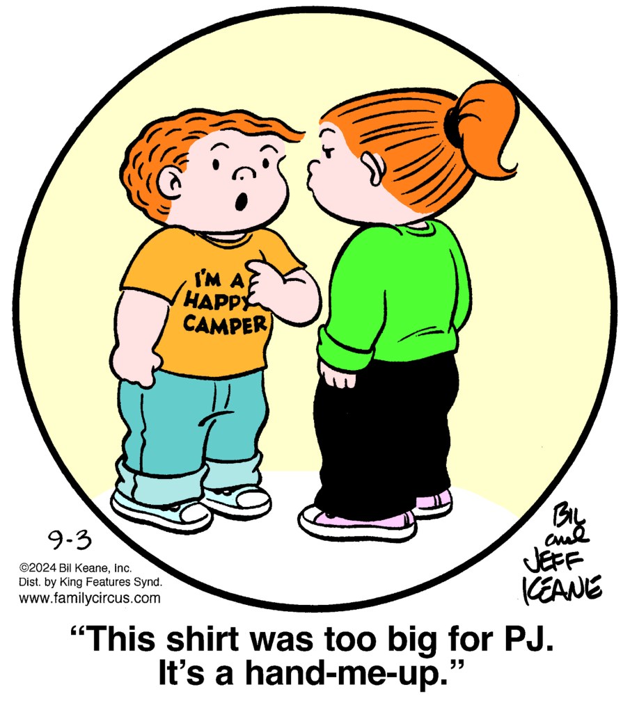 This “Bacön” comic (17-May-2024) was the third Friday in a row that Millsap attempted Peanuts-based satire (the other two weren’t much better). I never really liked Woodstock (nor the haphazard way that Schulz chose names for his newer characters), and it’s not the blood and gore that bothers me here. If a cartoonist is going to “borrow” characters for a gag, then it’s not enough duplicate the artwork: the characters need to retain their personalities, too. Snoopy never showed the slightest bit of hunting instinct in all five decades of Peanuts, so this comic is simply a dud.