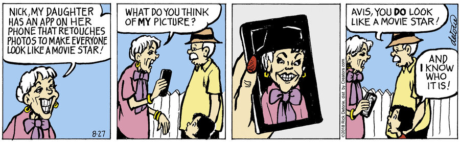 Back in August(†), Usual John submitted this One Big Happy strip as a partial CIDU, commenting: “I guess I sort of understand the comic, but I have no idea what movie star Ruthie has in mind.“