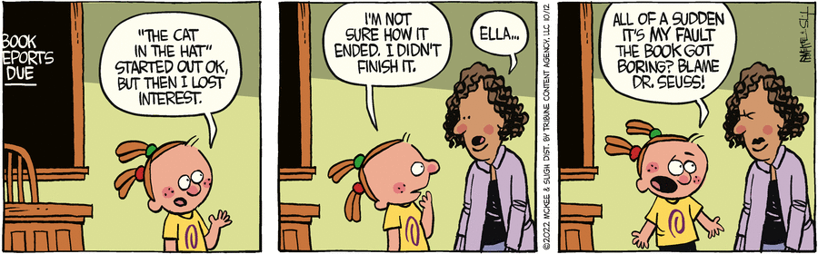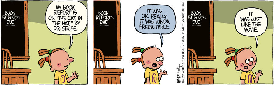 Andréa and Mitch between them observed overlapping pairs of cartoons involving The Cat in the Hat on Tuesday and Wednesday.