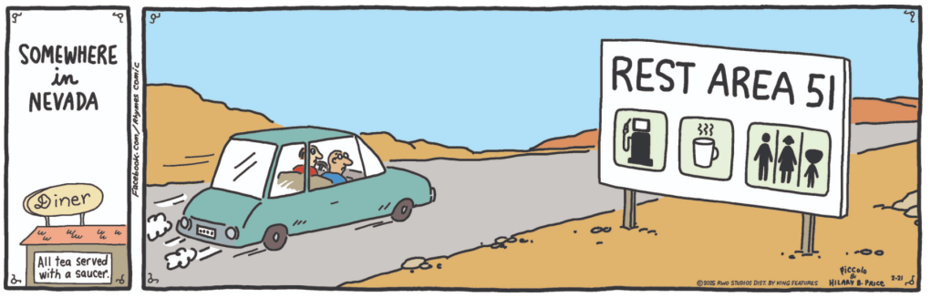 Boise Ed submits this one: “I get the Area 51 gag, but the name panel’s secondary gag (“All tea served with a saucer”) eludes me.”