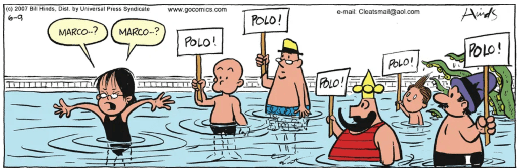 I have been following Leigh Rubin’s “Rubes” comics for at least a decade, or possibly two. I have to admit that it only rarely provokes an audible laugh, but it is virtually always worth a good smile. It is precisely this dependability that makes it all the more noticeable when a “Rubes” comic just doesn’t work, such as this one:
