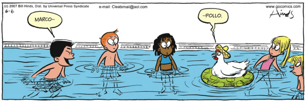 BVCC sends this in: “Has Leigh Rubin lost his marbles? Three CIDUs in a row. I almost get see something in Friday’s, with “load” having a scatological connotation. But it doesn’t seem like a joke to me. And I don’t get “horse property” or “Lilliputian Marines” at all.”