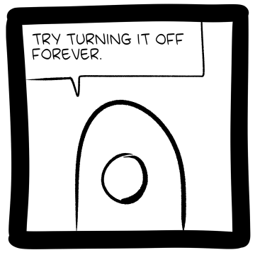 Bliss is heavy on the Grim Reaper theme lately. An improvement on the talking pet cartoons, IMO. And that sale scythe he got at the scythe sale is pretty good looking for a sale scythe purchased at a scythe sale. I wonder if I can still get a sale scythe at the scythe sale? Let me know in the comments if there’s still a scythe sale. [Happy, Phil?]