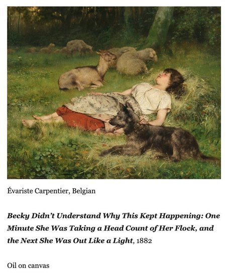 Thanks to dollarbill for this DSOH, featuring one of their favorite tropes, counting sheep. See also the posts in Random Comments and Site Comments on his idea for a structured-commenting game. (Please respond there, not so much here.)