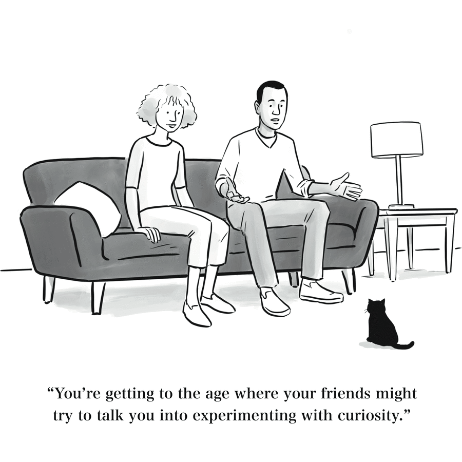 In case you didn’t know, the “Nick and Zuzu” comic panels run as accompaniment to an advice column by Carolyn Hax. Sometimes they really depend on the writing and are totally CIDU without it. Other times, the comic is quite independent of the column which sparked it; and that is the case here. And the cartoons appear elsewhere, where the column is not available or even mentioned, such as GoComics.